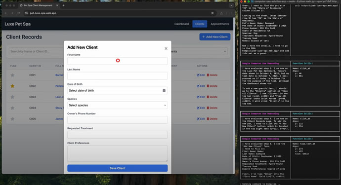 گوگل عملکرد این مدل را با چند ویدئو به نمایش گذاشته که نشان میدهد عامل، یادداشتها (sticky notes) را روی یک تخته (whiteboard) دیجیتال مرتب میکند و جزئیات مربوط به یک حیوان خانگی را از یک وبسایت به سامانه CRM منتقل میکند.البته ویدئوهای دموی این عملیات برای نمایش فرآیند در زمان واقعی سهبرابر سریعتر شدهاند.
