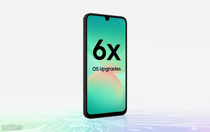 صفحهنمایش با 0.2 اینچ افزایش ابعاد حالا یک 6.7 اینچی سوپر امولد 8 بیتی با وضوح 1080×2340 پیکسل و نرخ رفرش غیر متغیر 120 هرتزی است که هنوز جایی برای سنسور اثر انگشت ندارد و دوربین سلفی بالایی آن ظاهراً همان 13 مگاپیکسلی f/2.2 سابق است. دوربینهای بخش پشتی نیز روی کاغذ تغییری نکردهاند و شامل یک دوربین 50 مگاپیکسلی با سنسور کوچک 1/2.76 اینچی (ظاهراً از نوع Samsung JN1) مجهز به لنز f/1.8 OIS، یک دوربین 8 مگاپیکسلی با لنز f/2.2 اولتراواید و 2 مگاپیکسلی ماکرو میشوند. پردازنده Exynos 1380 به دو رم 6 یا 8 گیگابایتی مجهز بوده و 128 یا 256 گیگابایت حافظه داخلی قابل ارتقاء دارد. باتری 5 هزار میلی آمپر ساعتی با شارژر 25 واتی نیز تغییری نکرده است. غیبت اسپیکرهای استریو و حذف جک هدست دو نکته منفی دیگر این مدل محسوب میشوند. A26 با اندروید 15 ارائه شده و تا 6 سال آپدیت میشود.