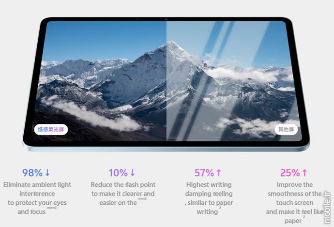 جالب است بدانید، تبلت vivo Pad5e در یک ورژن با نمایشگر پیشرفتهتر تحت عنوان ورژن Soft Light نیز به تولید میرسد. در ساخت نمایشگر این ورژن از پروسه حکاکی نانوی ضدانعکاس کمک گرفته شده که طبق ادعای ویوو با کاهش میزان بازتاب نور از سطح نمایش، تأثیر چشمگیری در بهبود تجربه کار با این تبلت خواهد داشت.