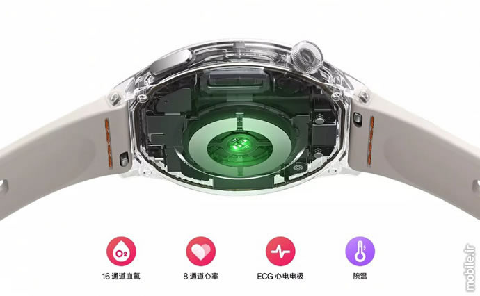 نبود سیستمعامل مانع حضور امکانات معمول و متداول پزشکی و ورزشی در Watch S نشده و این ساعت همچنان ضربان قلب و اکسیژن خون را اندازهگیری کرده و حتی به سنسور نوار قلب (ECG) و حسگر سنجش دمای بدن نیز مجهز شده است. دنبال کردن فعالیتهای متعدد ورزشی و امکاناتی نظیر گامشمار و سنجش کالری نیز طبیعتاً در لیست امکانات Watch S دیده میشوند. در بخش ارتباطی دستگاه نیز باید به حضور بلوتوث 5.2، NFC و مسیریابی GPS دو فرکانسی اشاره کرد.