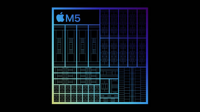 در کنار این پردازنده که در MacBook Pro 2025 و هدست Apple Vision Pro نیز حضور دارد، یک تراشه گرافیکی با ساختار 10 هستهای دیده میشود که هر یک از هستههای آن به یک شتابدهنده عصبی (Neural Accelerator) مجهز شدهاند و «حداکثر عملکرد محاسباتی GPU آن برای هوش مصنوعی [در مقایسه با M4] بیش از 4 برابر [افزایش یافته است]».