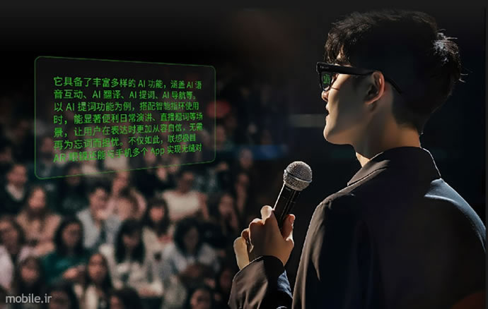 یکی از امکانات جالب Lenovo AI Glasses V1 بهرهمندی از قابلیت متننما یا در اصطلاح teleprompter است که بهویژه برای تولیدکنندگان محتوا و سخنرانان عمومی میتواند مفید باشد. چنانچه حلقه هوشمند لنوو را نیز در انگشت داشته باشید، میتوانید عمل اسکرول در متن سخنرانی و یا جابهجایی اسلایدها را بهراحتی انجام دهید، بدون اینکه بخواهید تماس چشمی با مخاطبین را قطع کنید.