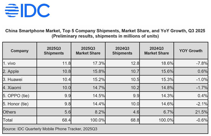 گزارش IDC از بازار اسمارتفون چین در سهماهه سوم 2025 – کاهش نرخ افت سالانه به 0.6 درصد