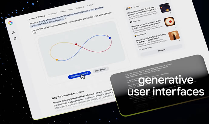 Gemini 3 Pro در حال حاضر در Google Search (در حالت AI Mode) در دسترس قرار دارد و طرحبندیهای بصری پویا، ابزارهای تعاملی و شبیهسازیها را بهطور مستقیم در نتایج جستوجو ارائه میدهد. همچنین هنگامی که کاربران سوالات پیچیده میپرسند، Gemini 3 Pro پاسخهای فوری ایجاد میکند که جدول، نمودار یا حتی ماشینحسابهای سفارشی را در میگیرد.