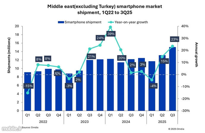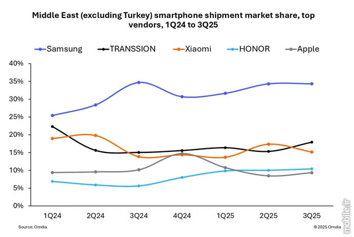 Omdia: رشد 23 درصدی بازار اسمارتفون خاورمیانه در فصل سوم 2025 و قدرتنمایی آنر و TRANSSION