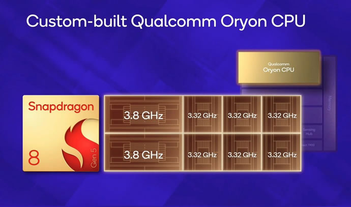 Snapdragon 8 Gen 5 مانند Snapdragon 8 Elite Gen 5 با لیتوگرافی 3 نانومتری ساخته شده و از نسل سوم هستههای سفارشی Oryon اما با سرعت پایینتر بهره میبرد. در واقع بیشینه سرعت کلاک 2 هسته سطح بالای این تراشه از 4.6 گیگا هرتز در SD 8 Elite Gen 5 به 3.8 گیگاهرتز محدود شده و فرکانس 6 هسته رده پایینتر نیز به همین ترتیب از 3.62 به 3.32 گیگاهرتز رسیده است. سرعت کلاک هستههای چیپست جدید حتی در مقایسه با دو هسته قویتر 4.32 گیگاهرتزی و شش هسته ضعیفتر 3.53 گیگاهرتزی SD 8 Elite سال گذشته نیز کمتر است و از این رو انتظار میرود عملکرد پایینتری را در مقایسه با این پردازنده هم ارائه دهد.