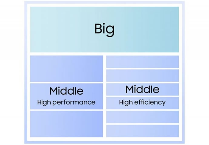 Exynos 2600 که با فرایند 2 نانومتری GAA سامسونگ ساخت شده مثل دیگر تجربههای اخیر این مجموعه از 10 هسته پردازشی بهره میبرد و این بار به هستههای ARM v9.3 مجهز شده و با فناوری HPB یا Heat Path Block راهکار تازهای را برای مدیریت حرارت ارائه میکند. (بیشتر در این رابطه در ادامه مطلب) در این ساختار 10 هستهای یک هسته اصلی یا Prime core از نوع ARM C1 Ultra با فرکانس حداکثر 3.8 گیگاهرتز، سه هسته رده بالا یا High-performance از نوع C1 Pro با فرکانس حداکثر 3.25 گیگاهرتز هرتز و شش هسته با راندمان بالا یا high-efficiency بازهم از نوع C1 Pro با فرکانس حداکثر 2.75 گیگاهرتز در نظر گرفته شده است.