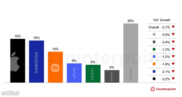 | برچسبها : | آمار Statistics ، کانترپوینت Counterpoint ، سامسونگ Samsung ، اپل Apple ، شیائومی Xiaomi ، اوپو Oppo ، آنر Honor | |