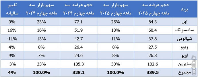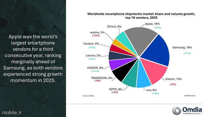 Omdia: رشد 2 درصدی بازار اسمارتفون در فصل چهارم و کل سال 2025 و رقابت نزدیک اپل و سامسونگ