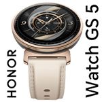 Honor Watch GS 5 از یک صفحهنمایش 1.32 اینچی امولد دایرهای با روشنایی نقطهای 1,500 نیتی بهره میبرد که عملاً اشارهای به کیفیت عملکرد این صفحهنمایش در محیطهای مختلف نوری نکرده و طبیعتاً در صفحهنمایش کوچک یک ساعت هوشمند تنها جنبه تزیینی دارد. این ساعت درون یک قاب نسبتاً بزرگ 44 میلیمتری از جنس آلیاژ آلومینیوم قرار گرفته و در بخش پشتی ساعت نیز از از آنچه «فیبر پلیمر تقویتشده» نامیده شده استفاده شده است.