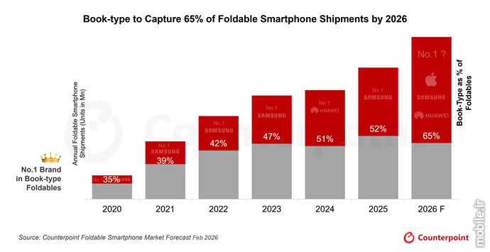 Counterpoint اعلام کرد: تاشوهای کتابی، بازیگر اصلی بازار دیوایسهای تاشو در سال 2026
