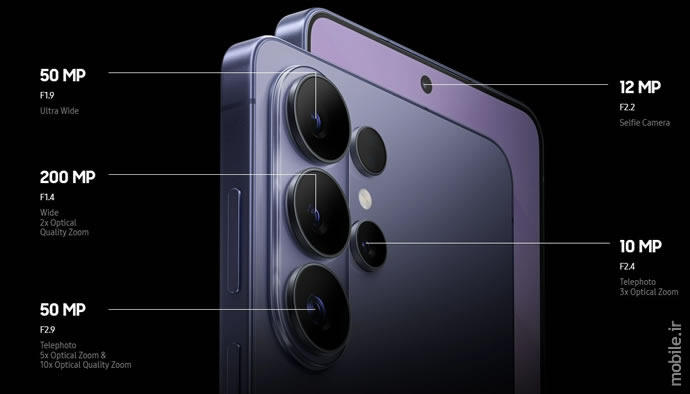 S26 Ultra سنسور هر چهار دوربین بخش پشتی را دستنخورده باقی گذاشته و بدینترتیب با کنار گذاشتن دوربین اولتراواید که سال گذشته از 12 به 50 مگاپیکسل تغییر کرد این مجموعه برای سومین سال پیاپی بدون تغییر مانده است. تمرکز سامسونگ اما در این دوره بهجای سنسور روی مجموعه نوری یا لنز قرار گرفته است. دوربین اصلی گوشی همان 200 مگاپیکسلی قبلی با سنسور 1/1.3 اینچی است که پیکسلهایی به بزرگی 2.4 میکرون را در وضوح پیشفرض 12 مگاپیکسل ارائه میکند. دیافراگم لنز این دوربین اما سهپله بازتر شده و از f/1.7 قبلی به f/1.4 رسیده که بهگفته سامسونگ 47 درصد نور بیشتری را در اختیار حسگر دوربین قرار میدهد.