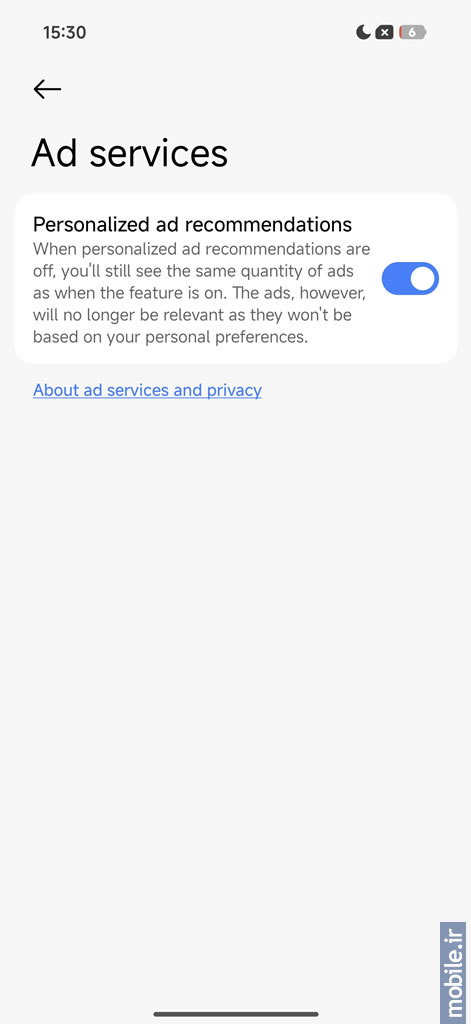 مسئله نمایش تبلیغات از طریق برنامههای پیشفرض نصب شده روی گوشی نیز بهقوت خود باقیست که یکی از آزاردهندهترین تجربههای کاربری را در این زمینه ارائه میکند. مطابق سیاست نمایش تبلیغات شیائومی، حتی در صورت غیر فعال کردن توصیههای تبلیغات شخصیسازیشده (Personalized ad recommendation) در منوی Security و در قسمت Additional settings و سپس Ad services بازهم مطابق توضیحات ارائهشده ذیل این گزینه همچنان همان حجم تبلیغات پیشین را دریافت خواهید کرد اما این تبلیغات دیگر شخصیسازیشده و مرتبط با شما نخواهند بود! برای تجربه بهتر و نمایش تبلیغات کمتر بهتر است از هیچیک از برنامههای پیش فرض گوشی از مرورگر اینترنتی و مرورگر فایل گرفته تا ریکوردر صدا و تقویم و حتی نمایش وضعیت آب و هوا بهطور کلی استفاده نشود و معادلهای دیگری را بدینمنظور نصب و استفاده کرد.