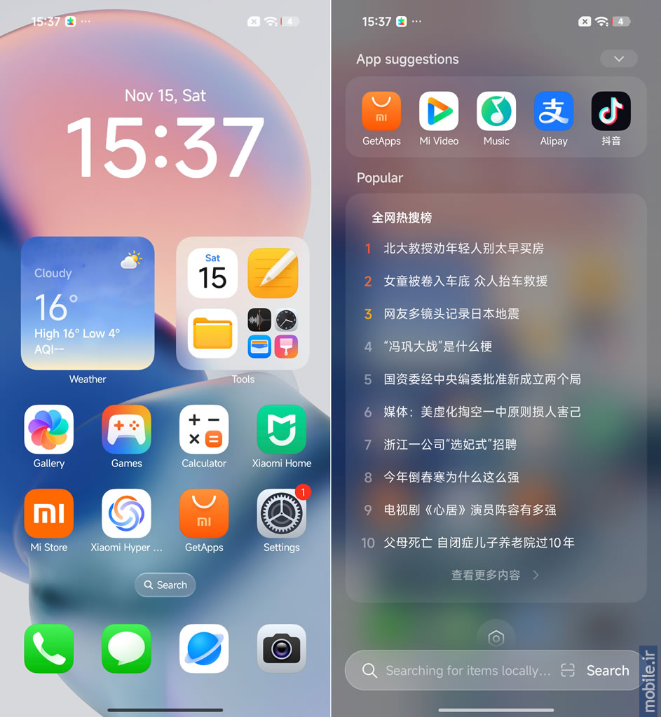 رابط کاربری HyperOS 3.0 گوشی مثل دیگر نمونههای مخصوص بازار چین پر از تبلیغات و برنامههای اضافه بوده و بسته گوگل نیز در آن جایی ندارد. اما اکثر این برنامهها را میتوان حذف کرد و بسته گوگل از جمله فروشگاه Play Store نیز در آن قابل نصب هستند. این پوسته اما با اعمال تمامی این تغییرات نیز هنوز کاملاً شلوغ و درهم بوده و تبلیغات نیز از آن غیر قابل حذف بهنظر میرسند. بدینترتیب (حداقل بهعنوان یک تجربه شخصی) نمیتوان از بخش نرمافزاری گوشی بهعنوان نقطه قوتی برای 17 پرو مکس یاد کرد.