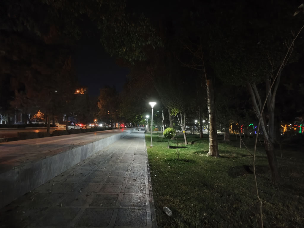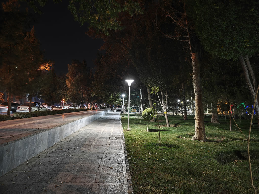 17 پرو مکس با تشخیص نور کم صحنه بهصورت اتوماتیک حالت شب را به تصویر اعمال میکند و ظاهراً گزینهای برای غیر فعال کردن آن نیز در نظر گرفته نشده است. عکسهای شب دوربین اصلی از جزییات بالا و نورگیری مطلوبی برخوردارند و نویز نیز در آنها بهخوبی کنترل شده است. منابع نور اما در برخی موارد میتوانستند بهتر ثبت شوند.