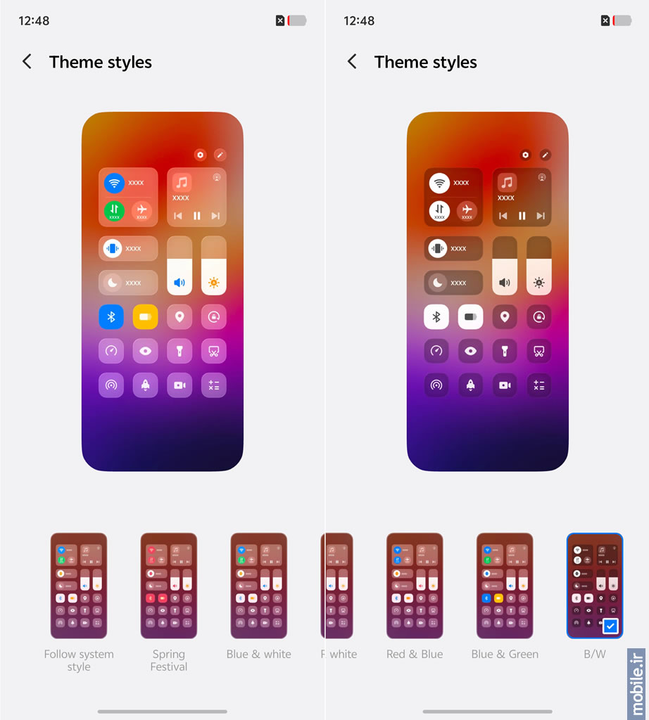 از طریق گزینه جدیدی در این قسمت بهنام Theme styles میتوان استایل رنگی آیکونهای کنترلسنتر را تغییر داد.