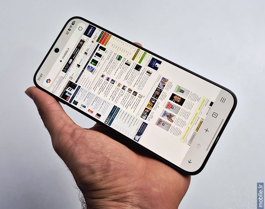 از کیفیت صفحهنمایش و میزان روشنایی آن کاملاً رضایت داشتیم و زیر نور خورشید و در تاریکی مطلق نیز همچنان شرایط مطلوبی را ارائه میکند. نرخ رفرش 120 هرتز بهخوبی در شرایط مختلف تغییر کرده و حین نمایش یک محتوای ثابت به 1 هرتز نیز میرسد و بدینترتیب در مصرف انرژی صرفهجویی میکند. از کیفیت رنگ این پنل در حالت پیشفرض نیز رضایت داشتیم و برخلاف بسیاری از رقبا سعی در اشباع بالاتر و اغراقشدگی در رنگ نمیکند. حاشیههای بسیار نازک اطراف صفحهنمایش شایسته یک پرچمدار بزرگ است و نسبت صفحهنمایش به بدنه (display-to-body ratio) بالایی را ارائه میدهد.