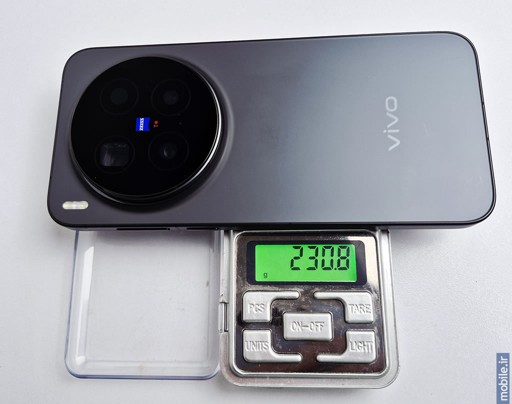 گوشی با وجود صفحهنمایش نسبتاً بزرگ، باتری حجیم و لنزهای دوربین برآمده چندان در دست سنگین احساس نمیشود و این وزن نیز تقریباً بهخوبی در بالا و پایین توزیع شده است. وزن 226 گرمی X300 Pro البته نسبت به اکثر رقبای این مدل اندکی بالاتر است.