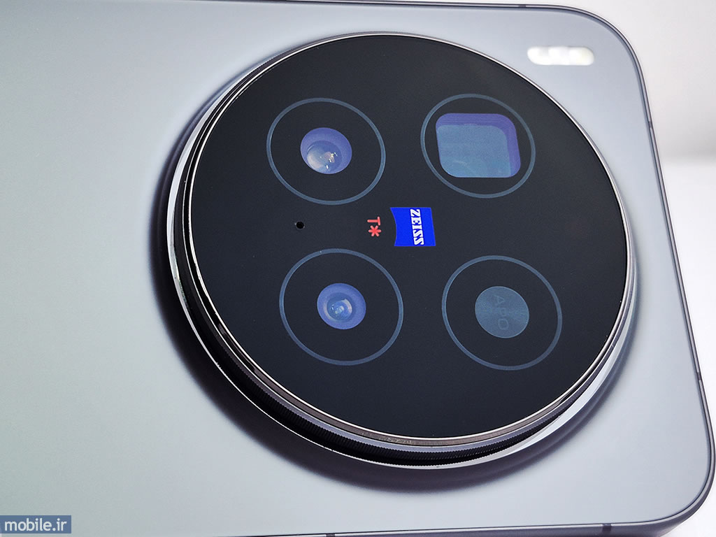 نمیتوان X300 Pro را در دست گرفت و در همان لحظه اول متوجه محوطه دایرهایشکل بسیار بزرگ دوربینهای بخش پشتی آن نشد؛ این دایره که تقریباً کل بخش بالایی پشت دستگاه را در بر گرفته فضایی وسیع با یک شیشه سیاه سرتاسری را شامل میشود که دوربینهای این قسمت در دورتادور و نشان زایس و پوشش ضد انعکاس T* در مرکز آن قرار گرفتهاند.