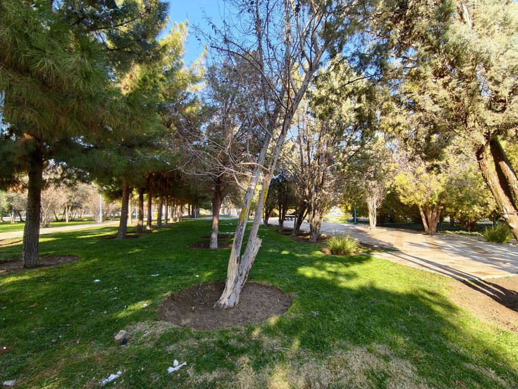 عکاسی با X300 Pro را در یک سرد زمستانی با نور نچندان ایدهآل آغاز میکنیم و طبق معمول در ابتدا بهسراغ وضوح پیشفرض دوربین اصلی میرویم که تصویری با طیف دینامیکی گسترده و کنتراست بالایی را ارائه کرده و میزان جزییات آن مطابق برش اندازه واقعی در تصویر زیر بسیار مناسب است. رنگهای این دوربین البته غنیتر از حالت طبیعی بهنظر میرسند.